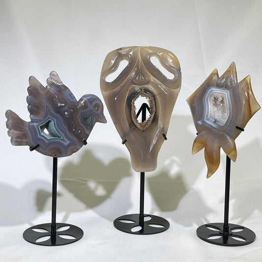 5 Types Druzy Agate Carving with Stand