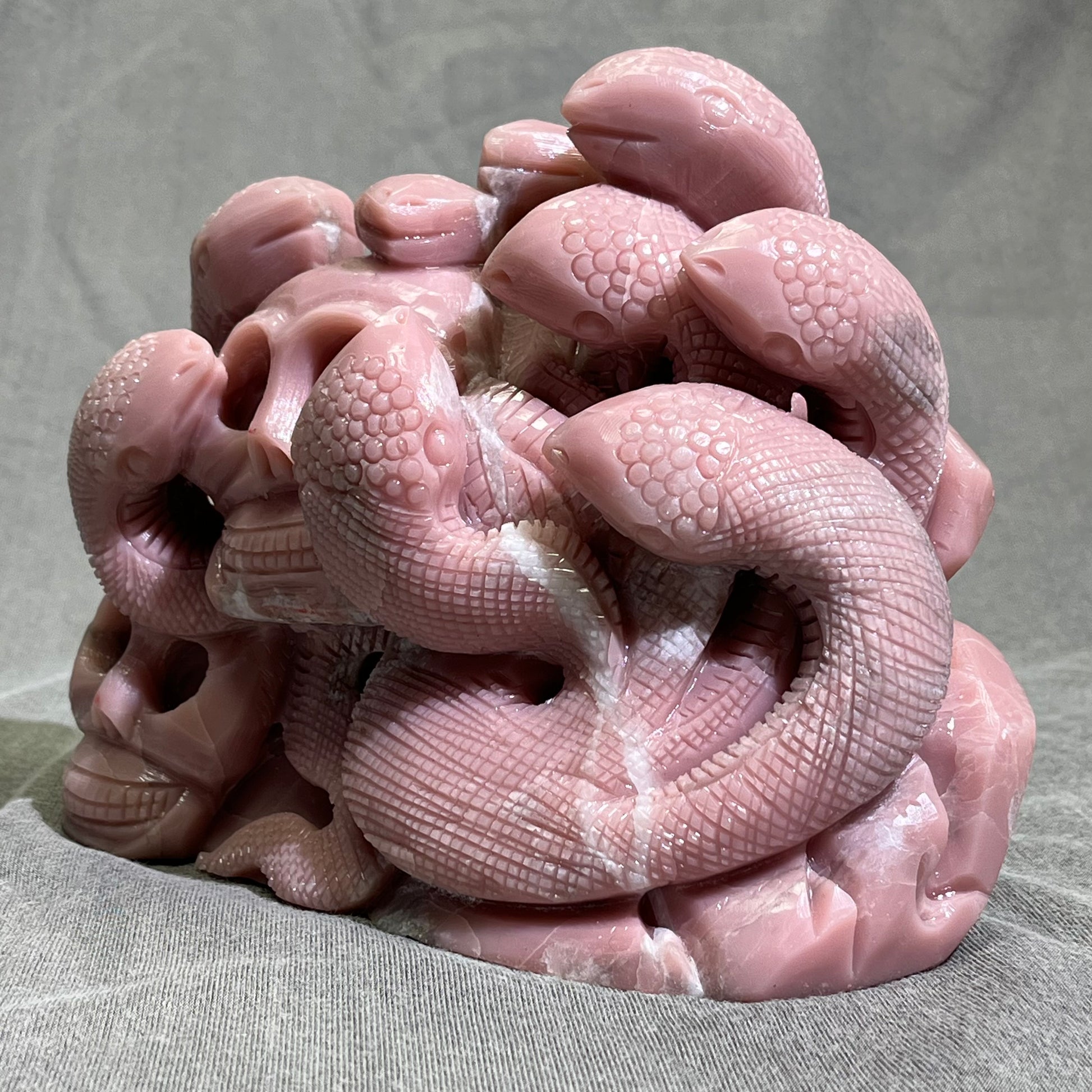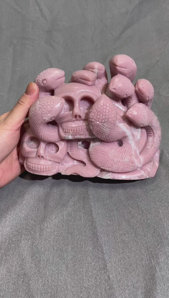 Pink Opal Skull with Snake Carving